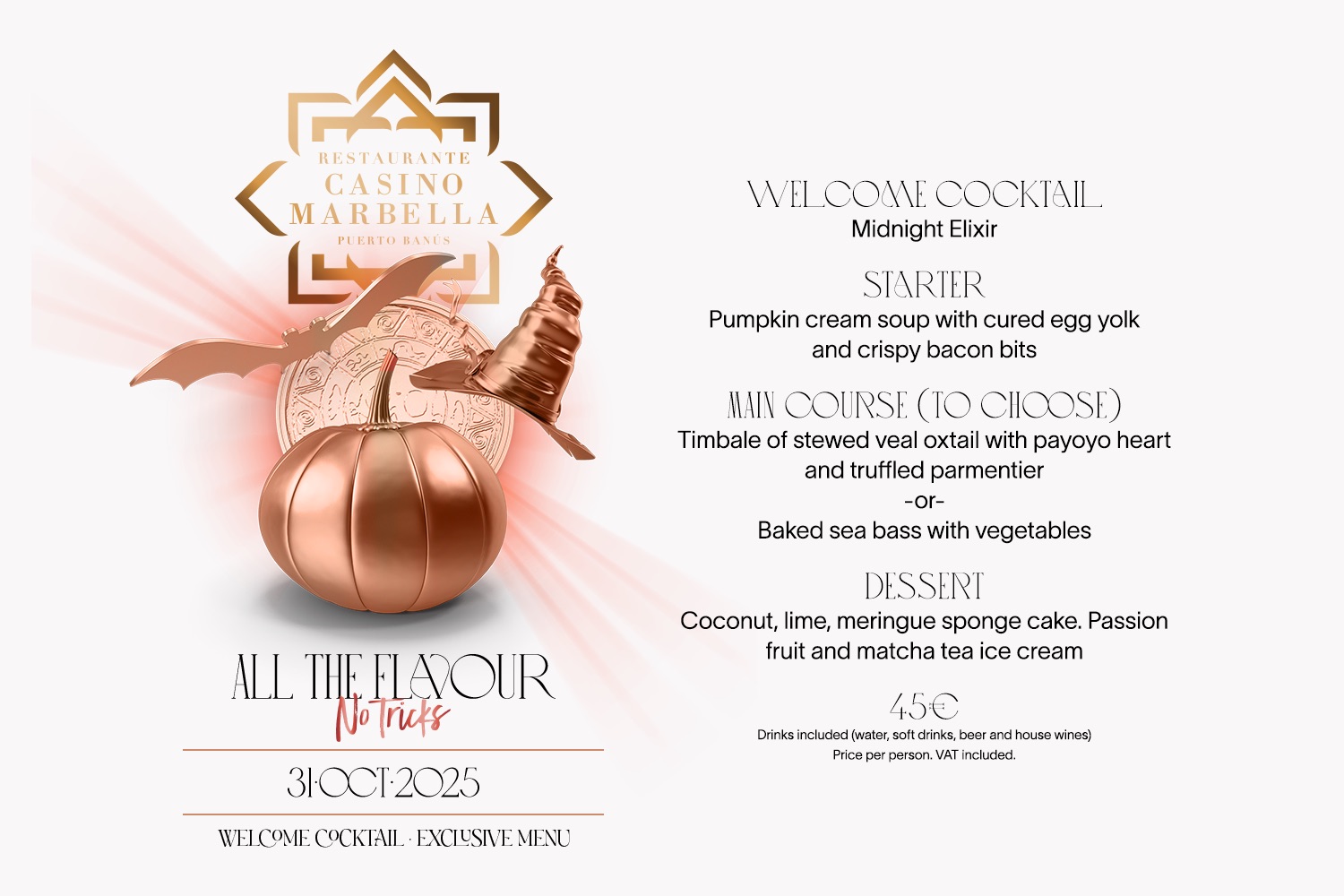 Under the motto Eat, feel, repeat, Restaurante Casino Marbella invites you to experience Halloween in a different way: with great food, an exclusive atmosphere, and a concept designed to enjoy and repeat.