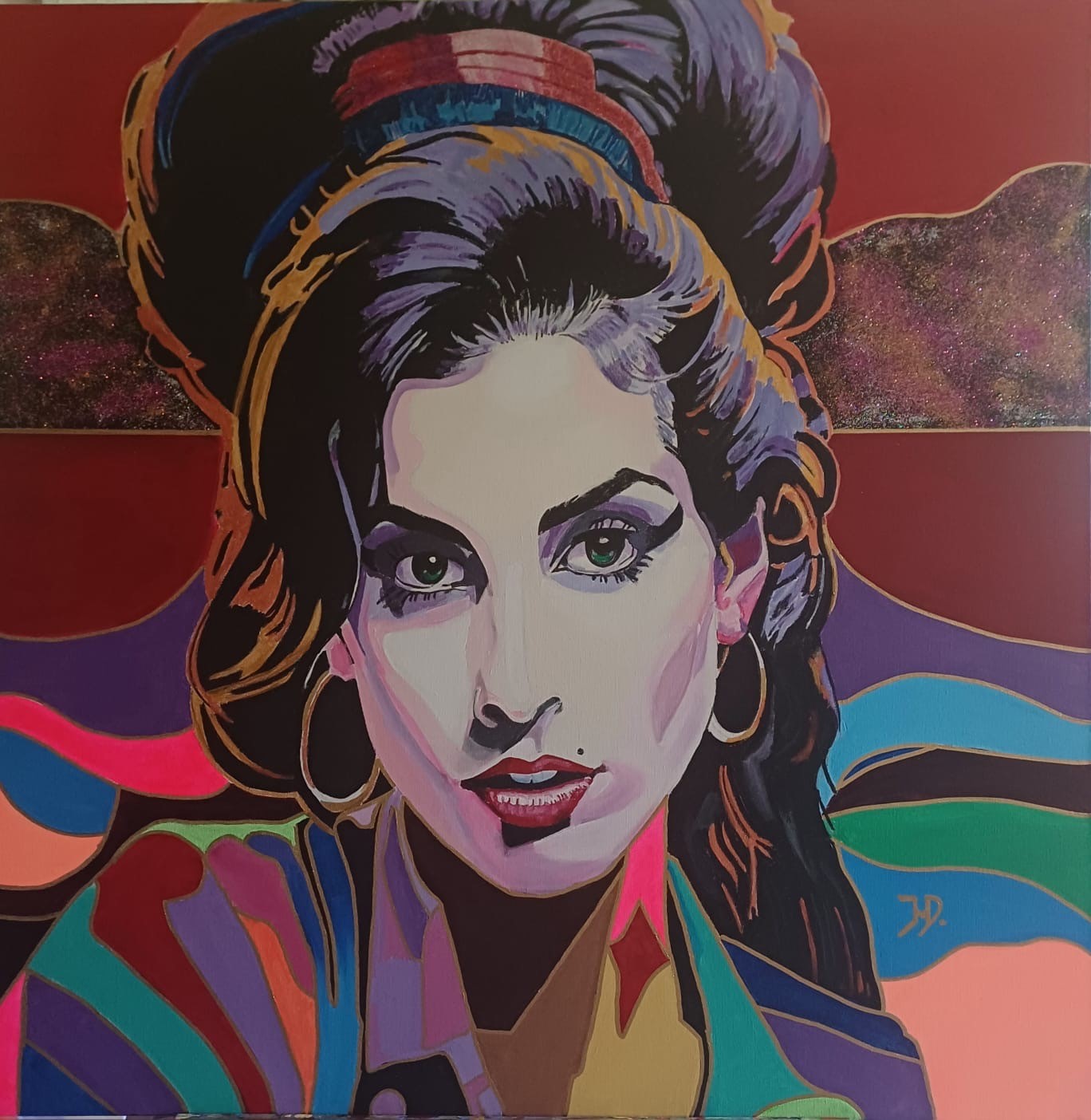 Sus obras, realizadas en pintura acrílica sobre lienzo, destacan por el uso audaz del color: rojos intensos, azules eléctricos, verdes luminosos que parecen latir sobre la tela. Los retratos figurativos, de trazo libre y expresivo, capturan gestos, miradas y escenas cotidianas con una frescura que invita a la contemplación. Cada cuadro es una celebración de la vida, una afirmación de que el arte puede ser impulso, alegría y descubrimiento.